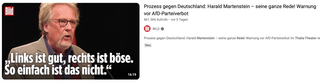 Martenstein schrieb einst geistreiche, manchmal brillante Kolumnen für die Zeit. Vor einer Woche stand er im Hamburger Thalia Theater und präsentierte die neue Version seiner selbst. Dort sollte im Rahmen einer „Gerichtsverhandlung“ erörtert werden, ob es zu einem Verbotsverfahren gegen die AfD kommen soll. Sein Plädoyer gegen ein Verbot geriet zur Beschimpfung des Publikums. Dort säßen die wahren Feinde der Demokratie, goebbelte er sich in Rage, man wolle Millionen Wähler um ihr Recht an politischer Teilhabe betrügen. Das ist ein Argument vom Grabbeltisch der Rhetorik, gestützt von einer These aus dem Sonderangebot: Wo nicht Nazi draufsteht, ist auch nicht Nazi drin.